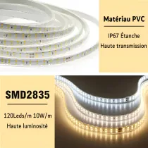 Ruban LED 2835-120 Led/m en silicone Étanche IP67 – Vente par mètre